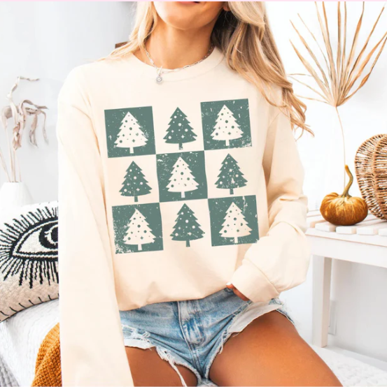 Celebrate the holiday spirit with the Christmas Tree Square long sleeve shirt. Featuring a distinctive green tic tac toe design arranged as Christmas trees on an ivory background, this shirt blends festive charm with subtle style. Crafted for comfort and easy layering, it’s an excellent choice for seasonal gatherings or casual winter wear. Its unique pattern adds a clever twist to classic holiday apparel, making it a thoughtful addition to your festive wardrobe.