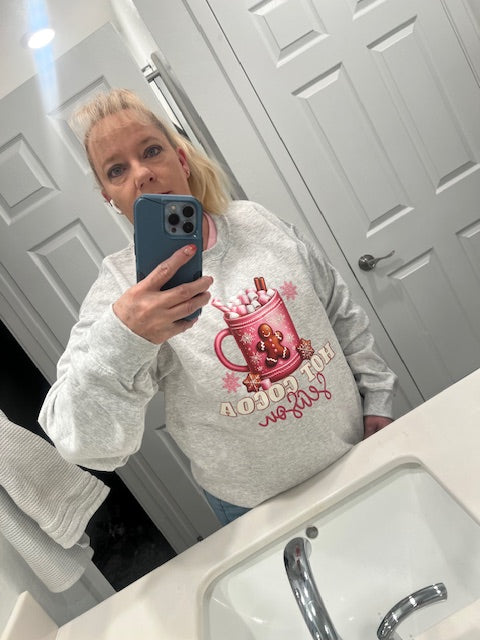 Celebrate cozy moments with the Hot Cocoa Season pink sweatshirt, perfect for chilly days by the fire. Its soft fabric keeps you warm while the charming gingerbread coffee mug design adds a festive touch, evoking the comforting aroma of hot cocoa. Ideal for holiday gatherings or relaxed weekends, this sweatshirt blends comfort with seasonal style effortlessly.